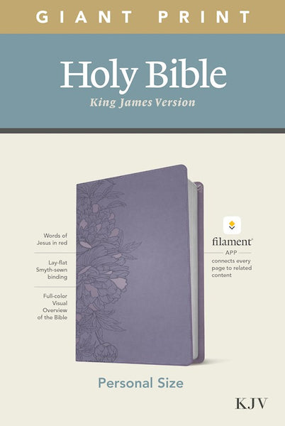The new Tyndale KJV Personal Size Giant Print Bible, Filament-Enabled Edition has readable text and an attractive layout in an easy-to-carry size. And while it has the same low price as basic text-only Bibles, the KJV Personal Size Giant Print Bible offers much more. It not only features a bold new design and the trusted and revered King James Version (KJV) but also includes the groundbreaking Filament Bible app. This app enables you to use your mobile phone or tablet to connect every page to a vast array of related content, including study notes, devotionals, interactive maps, informative videos, and worship music.